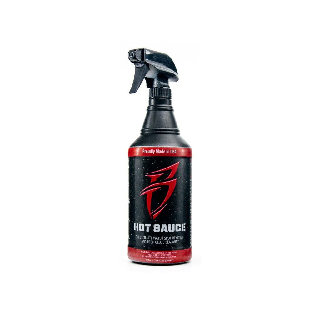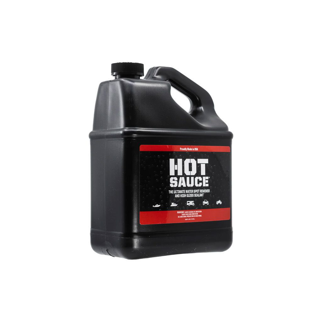 Hot Sauce is the ultimate hard water spot remover equipped with high gloss sealants for the optimal cleaning of boats and paddleboards. This biodegradable, safe, and soft water-based detailer is infused with specialty wax sealants to effectively eliminate hard water spots, mineral deposits, and exhaust residue without compromising your existing wax coat. Hot Sauce is specially formulated for use on various surfaces including Fiberglass, Plastic, Chrome, Glass, and all painted surfaces.
