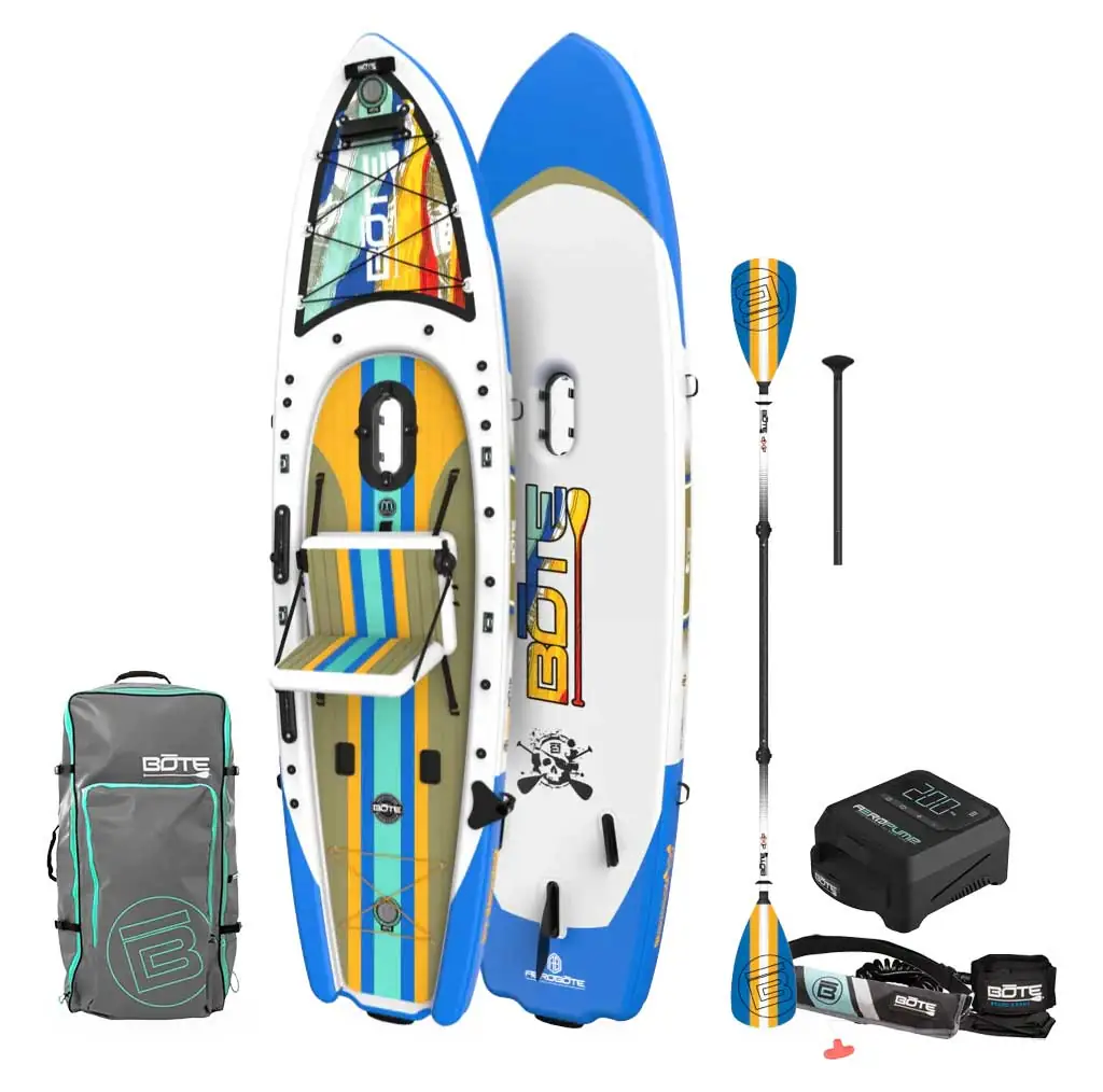 Adventure doesn’t stop at the shoreline—this inflatable paddle board makes it easy to bring everything with you. The Rackham Aero 12′4″ APEX packs into a rolling travel bag for easy storage and transport, with a loaded weight of 79 lbs. The package includes a 3-piece adjustable paddle, AeroPump Mini rechargeable pump, repair kit, PFD, and coiled leash—everything you need to hit the water straight out of the box. With AeroBOTE’s premium construction, this board is engineered for maximum durability while staying lightweight and portable. Whether you’re traveling cross-country or keeping it local, your ultimate paddle board adventure is always within reach.