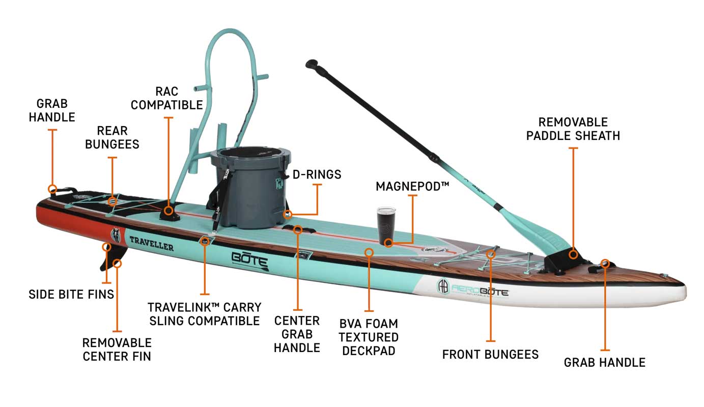 Bote Boards Traveler Touring inflatable SUP Package. Available at Riverbound Sports in Tempe, Arizona.