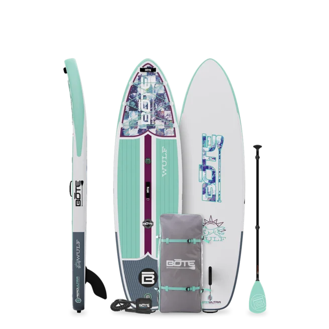 | Included in Box | Bote Boards Wulf 10′4″ Inflatable Paddle Board, 3-Piece Adjustable SUP Paddle, Travel Bag, Hand Pump, leash, and Aero Repair Kit |