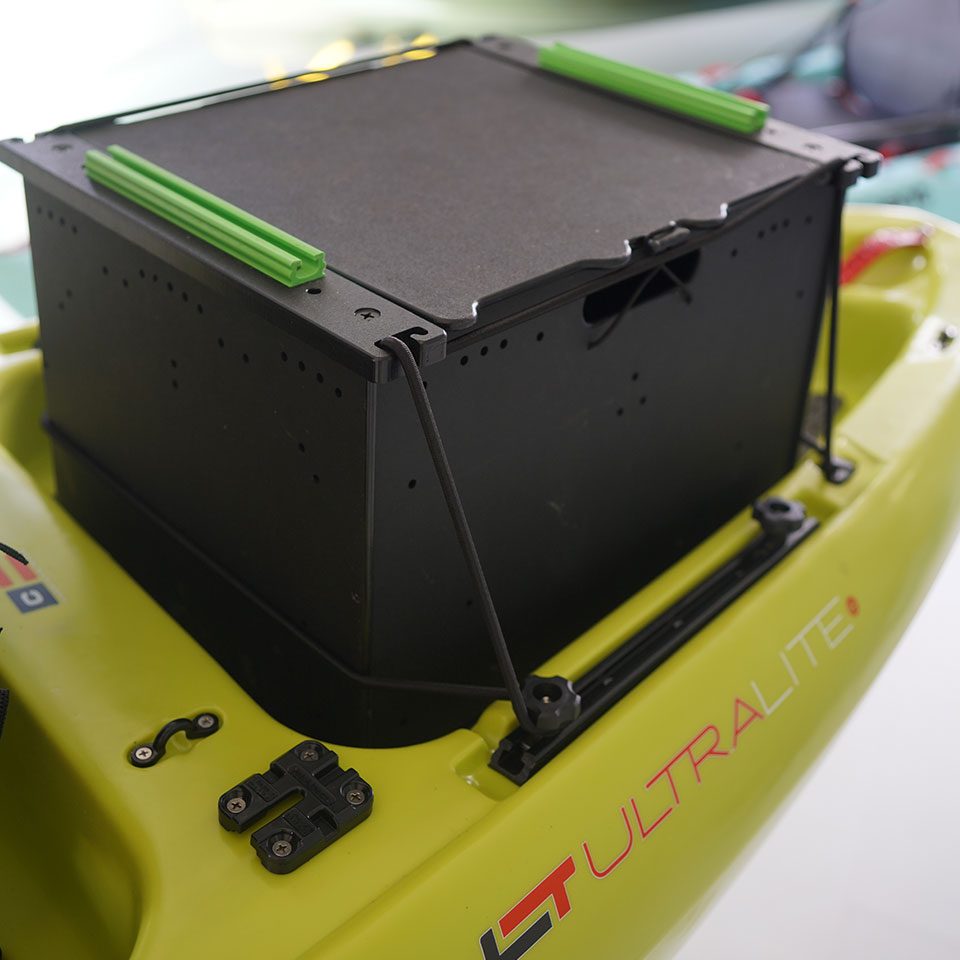 The UltraLite packs serious utility into a sleek, compact design. Up front, a spacious hatch with an adjustable bungee system keeps your essentials—like a dry bag or rain jacket—secure and within reach. It’s the perfect spot to stash your PFD when you’re on the move. Out back, integrated YakAttack Gear Tracks and four pad-eyes give you the freedom to rig it your way. Tweak your bungee layout, mount accessories, or strap down extra gear—the UltraLite adapts to every outing with ease.