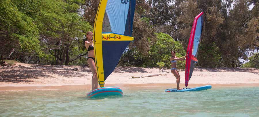 Removable center & rear fins – no tools required – use center fin for excellent upwind performance and stability when windsurfing