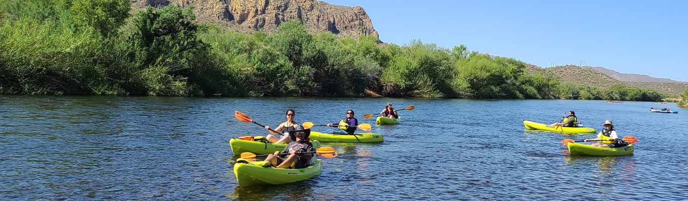 Kayaker on the Lower Salt River. Riverbound Sports Tours and Rentals. There are a number of significant benefits associated with taking a guided tour when exploring the Lower Salt River area. Whether opting for safety considerations, convenience, or special insights, taking a guided tour is generally considered to be one of the easier and more successful ways of paddling the Lower Salt River.