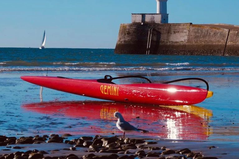 The Gemini takes inspiration from OC1 performance canoes, delivering a streamlined design that cuts through water with precision. On flat water, its exceptional glide ensures every stroke translates into speed, while in rougher conditions, the Gemini excels at staying buoyant and connecting surf bumps with ease. Its expertly crafted volume strikes the perfect balance, allowing it to push through troughs and perform in a variety of conditions, making it ideal for competitive paddling or recreational fun.