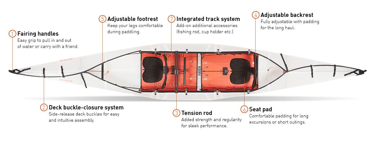 The Haven TT is the most stable Versatile kayak in our lineup and ready for all kinds of on-water fun. So grab your paddles and get ready for some serious fun with the Oru Kayak Haven TT Tandem Kayak!