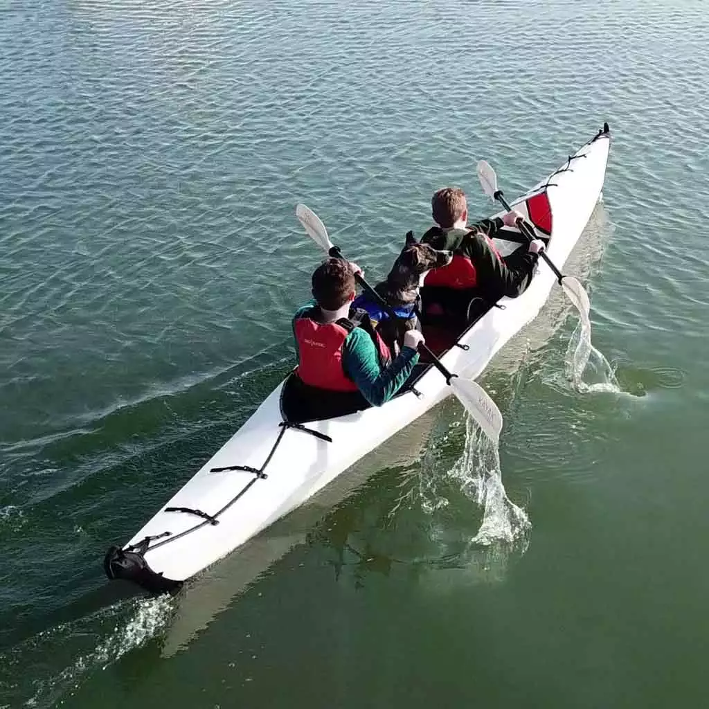 - Compact and lightweight at only 41 lbs – less than half the weight of a traditional 2 person kayak