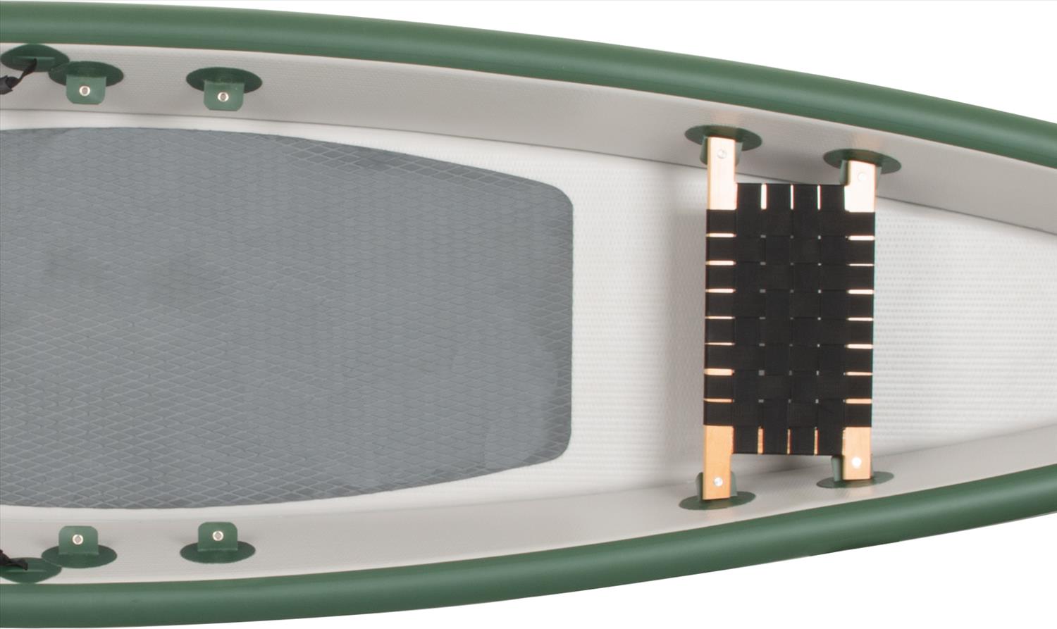The 3-inch thick, high-pressure (up to 10 psi) side and floor chambers give the TC16 a narrow yet incredibly rigid hull while maximizing interior space. This innovative construction reimagines the traditional canoe in a lightweight inflatable form, delivering benefits once thought impossible: unmatched safety, exceptional stability, and effortless portability—all without compromising paddling performance. U.S. Patent 9,452,809