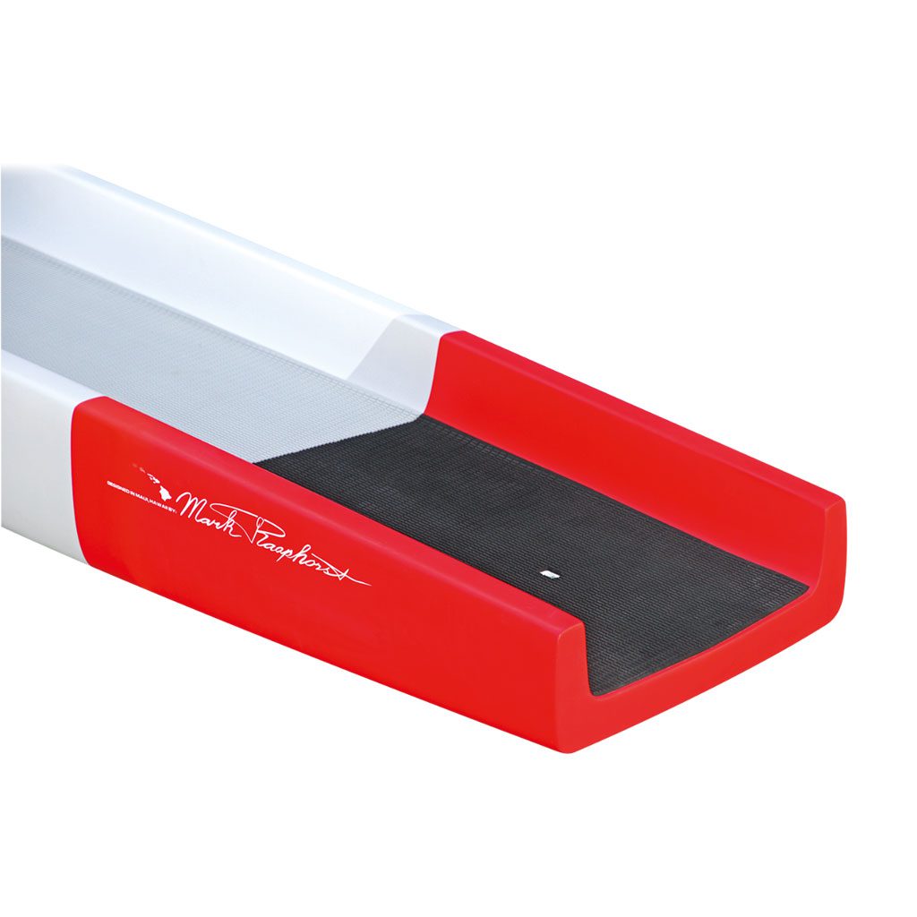 The XRS flat water race board provides the best possible length to the width-aspect ratio, delivering a stable platform for a racer to power up for speed. The flat bottom with the proportionally wide tail offers this foundation, and with an effective waterline, the XRS allows paddlers to achieve unrivaled acceleration. The unique design with a bulbose high volume and low rocker line flat bottom design reduces drag and create an efficient glide and speed in calm water conditions. The open wide open transom allows easy draining and stability.