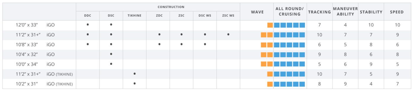 - Narrow midsection & wide tail makes for faster glide, more stability, and easier to turn.