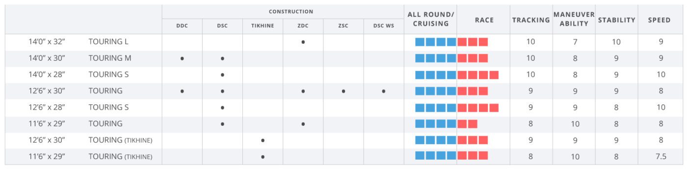 The Starboard Touring boards is perfect for riders up to 245 lbs that are looking for a fast, efficient board with added stability.