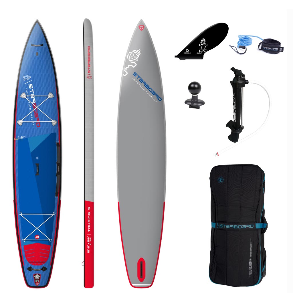 The Starboard 12’6″ x 28″ Touring SUP is a reliable touring board, that offers a stable and efficient glide on the water.