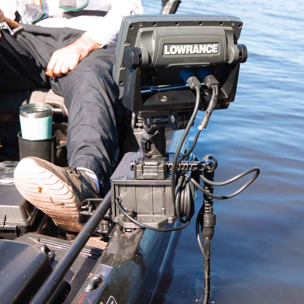 - GearTrac, fish finder mount, transducer arm, and display not included.