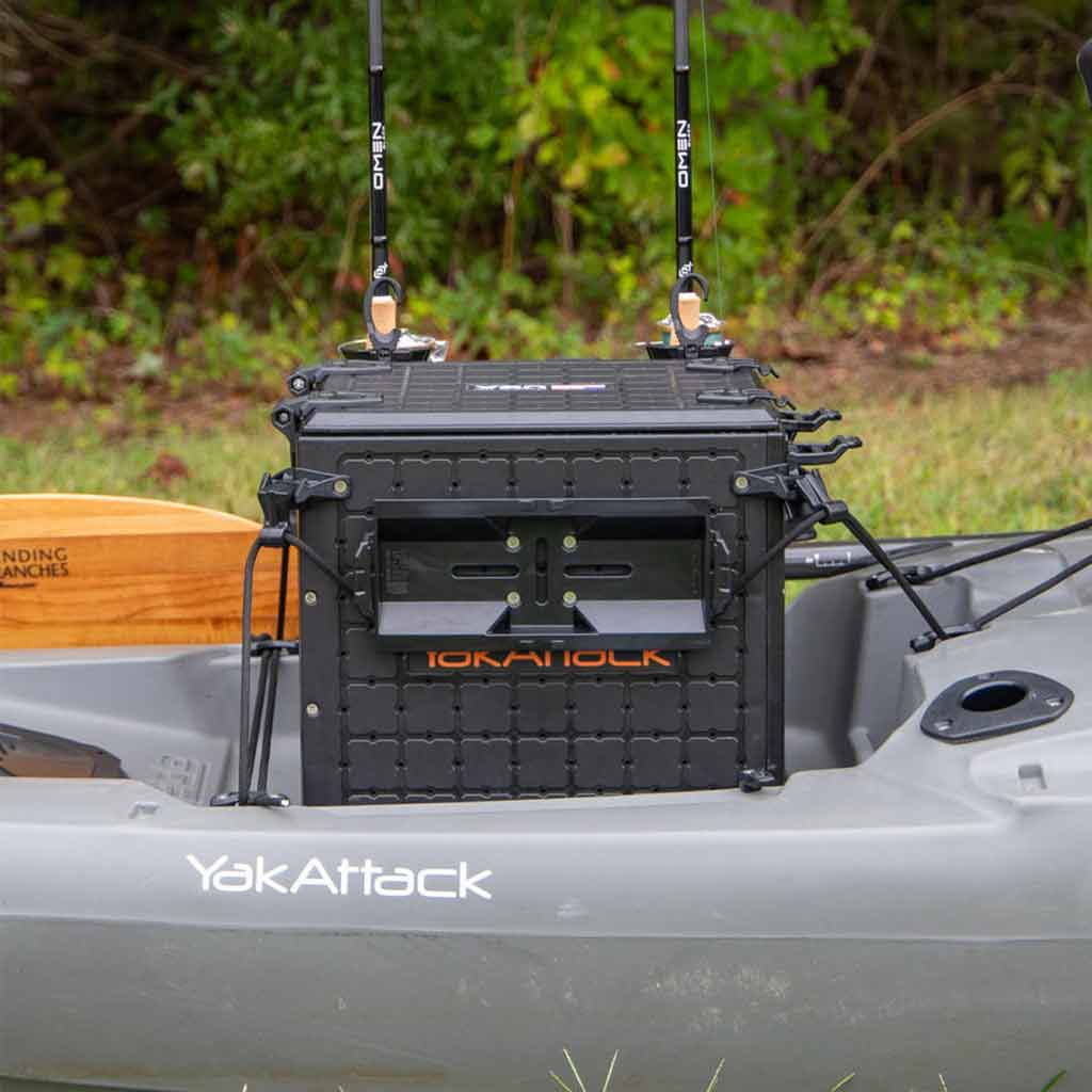 The TracPak Quick Release Base provides a robust foundation for mounting one or two TrackPak Stackable Storage Boxes onto a single mounting point. This versatile mount is compatible with all YakAttack MightyMounts, GearTrac, and most other factory-installed kayak accessory tracks.