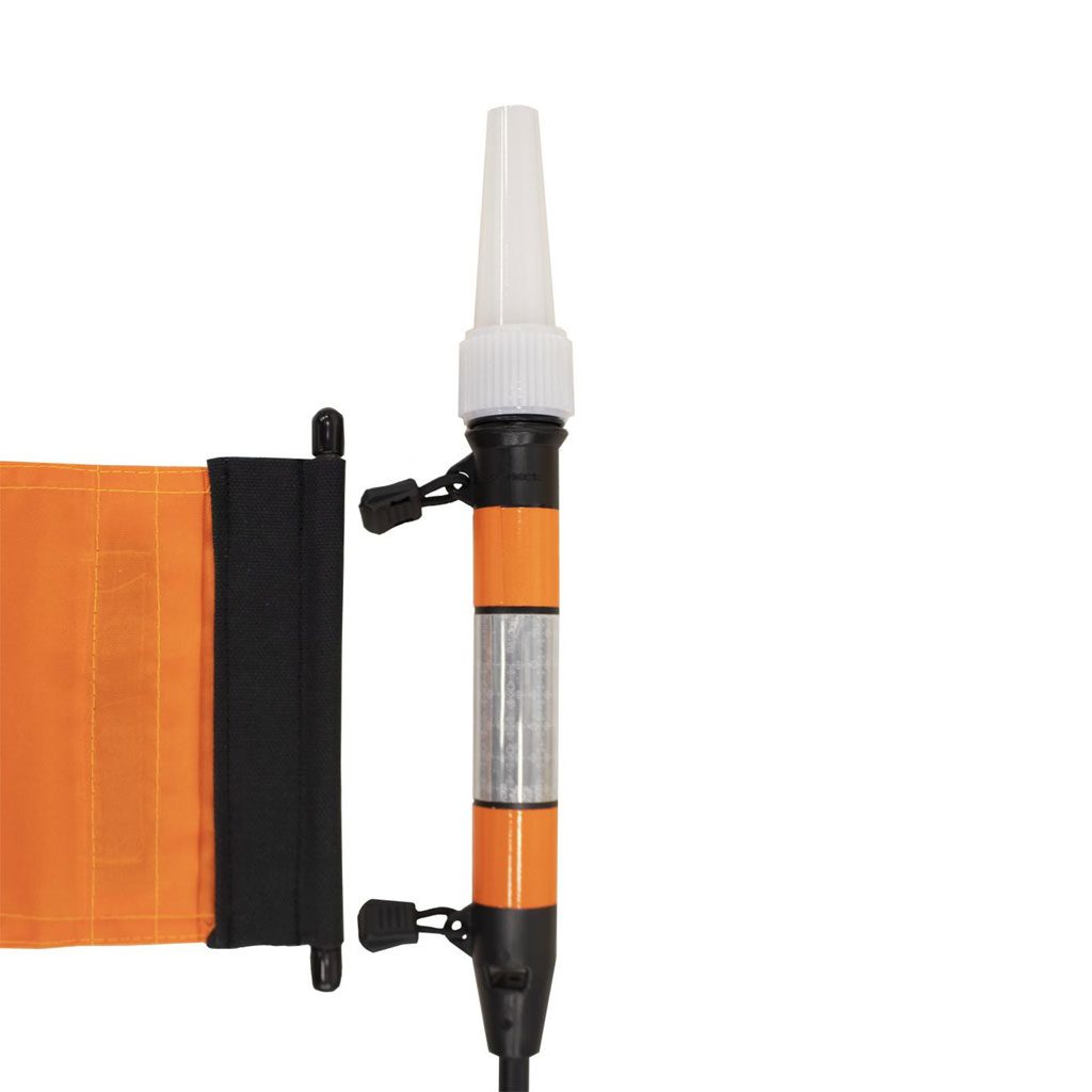 In situations where a 360-degree white light is not necessary or required, a flag can be slid over the light to create a soft glow.